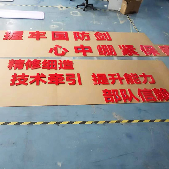 青島紅色發(fā)泡板字雕刻部隊(duì)紅色口號(hào)立體字制作安裝,紅色發(fā)泡板字在企業(yè)口號(hào)墻中的應(yīng)用主要表現(xiàn)在以下幾個(gè)方面: