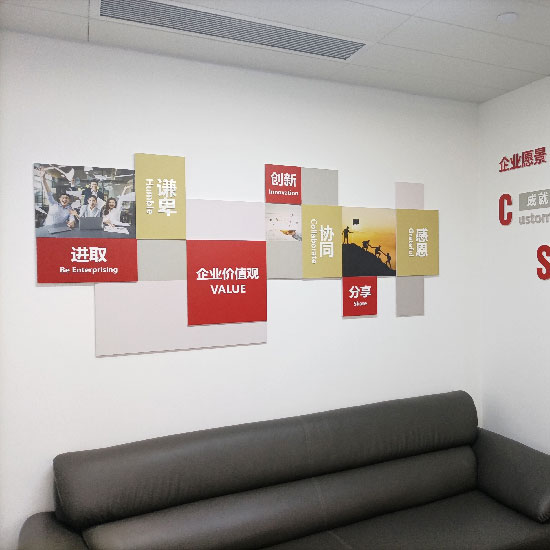 企業(yè)文化墻是企業(yè)精神應有之義的體現(xiàn),也是企業(yè)獨特的精神風貌。文化墻是企業(yè)文化建設的主體,讓墻面“會說話”,表現(xiàn)出行為藝術感,每一面墻都像是“無聲的詩”,它們深深地體現(xiàn)著濃濃的情意,融知識性、教育性、藝術性于一體,達到了“潤物無聲”的目的。