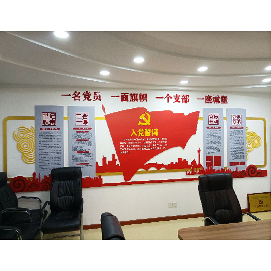 在我們黨的文化墻設計中,黨建文化需要緊跟時代步伐,不斷前進。要實時關注黨的動態(tài),關注國計民生,學習黨的制度,不斷學習黨史,突出黨的領導。而且,社會上人民群眾最關心的是黨的廉政建設。這也是黨組織的一個核心問題,所以需要根據實際情況在內容部分呈現出來。