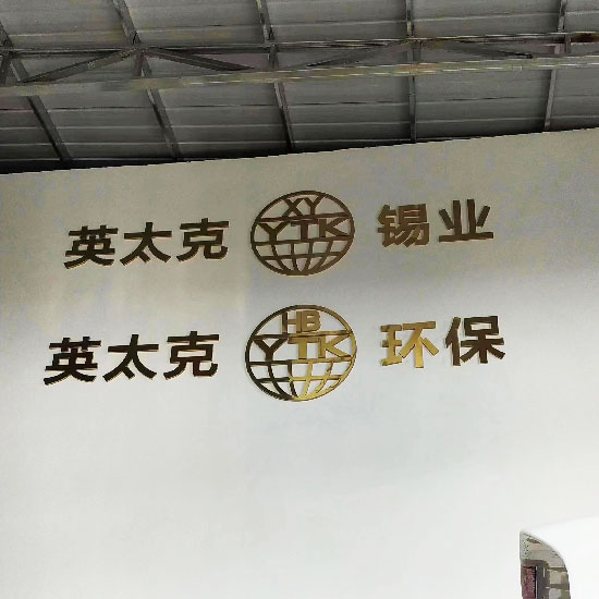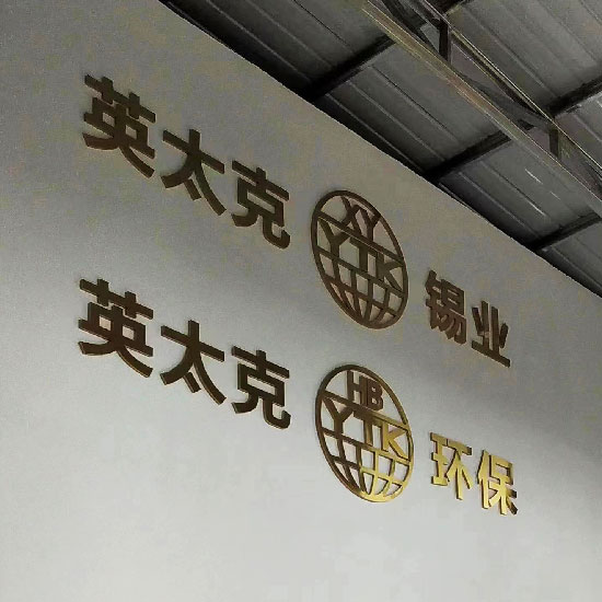 青島優(yōu)邦智造標(biāo)識(shí)制作公司為英太克環(huán)保、英太克錫業(yè)公司制作安裝鈦金字。青島英太克錫業(yè)是中國(guó)北方實(shí)力雄厚的電子釬焊料和高科技鉛制品生產(chǎn)企業(yè)之一,公司主要產(chǎn)品有:電子工業(yè)釬焊焊錫絲、焊錫條、鉛錫合金、鉛銻合金、軸承合金、電解用陰陽(yáng)極版,鉛管、鉛粒、鉛磚鉛板、鉛絲、鉛合金、鉛鑄件等等,年銷售額過(guò)億元。公司產(chǎn)品已廣泛應(yīng)用于航空航天、電子通訊、家電化工、電解電鍍、汽車制造、防腐蝕、防輻射等多個(gè)行業(yè)。各類產(chǎn)品遠(yuǎn)銷歐美日韓等幾十個(gè)國(guó)家和地區(qū)。